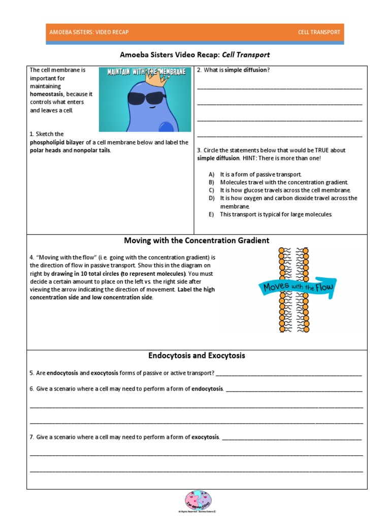 The handouts are application oriented and supplemental to the. A worksheet to test your understanding of cell transport concepts after watching a video by amoeba sisters. This cell transport amoeba sisters handout was made to accompany the cell transport video made by the amoeba sisters and hosted on youtube. Handouts created by the amoeba sisters that correspond to amoeba sisters.