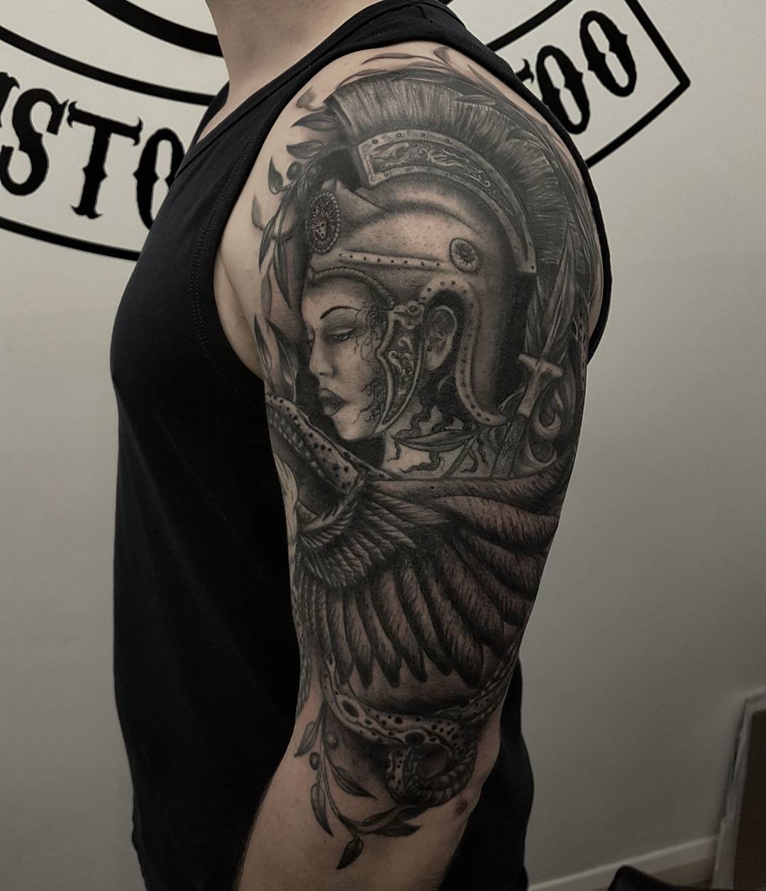Got another session in on Derek’s Athena sleeve. Thanks dude. Now to