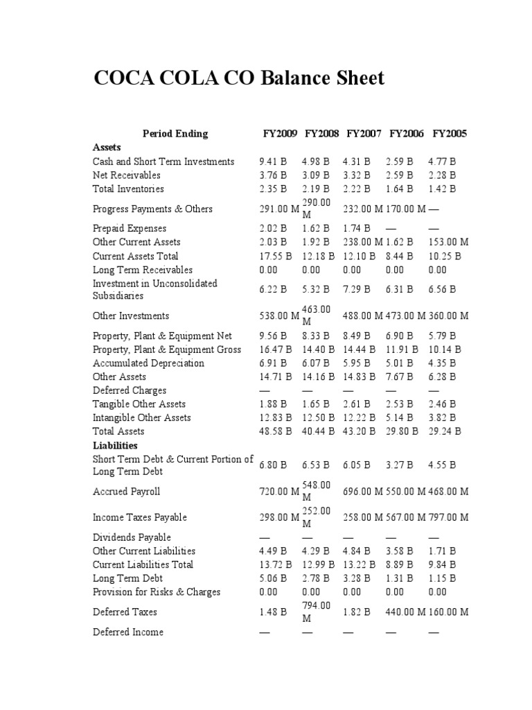 Coca Cola Co Balance Sheet Balance Sheet Stocks