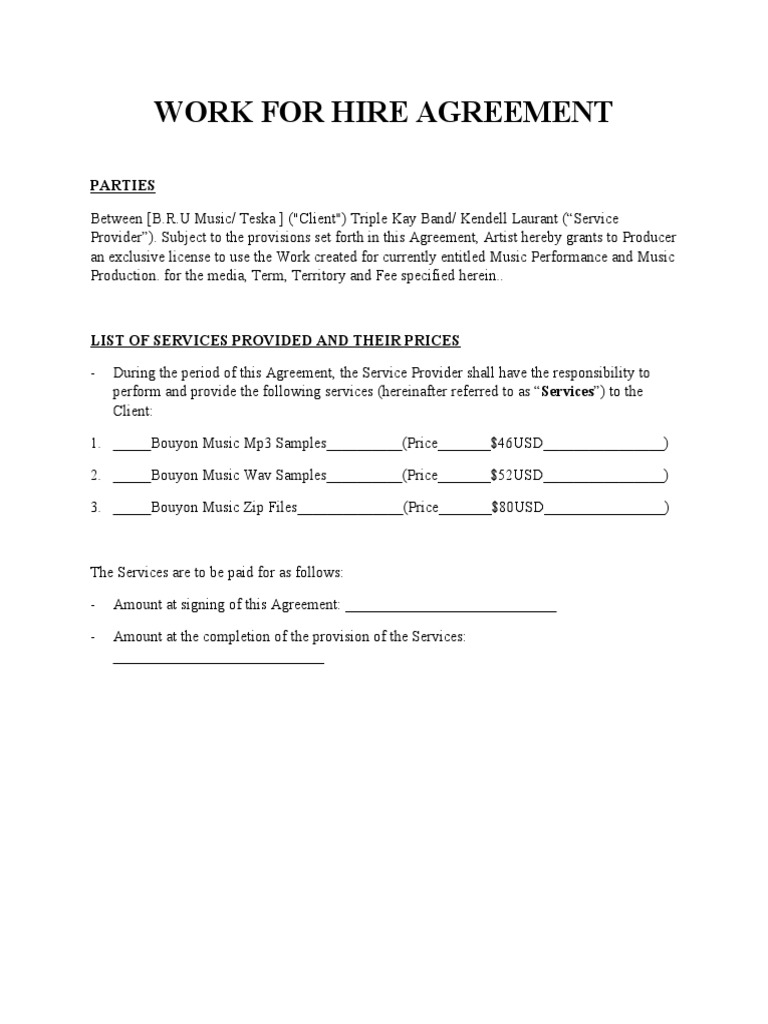 Fillable Online Free Work For Hire Agreement Templates for Download Fax