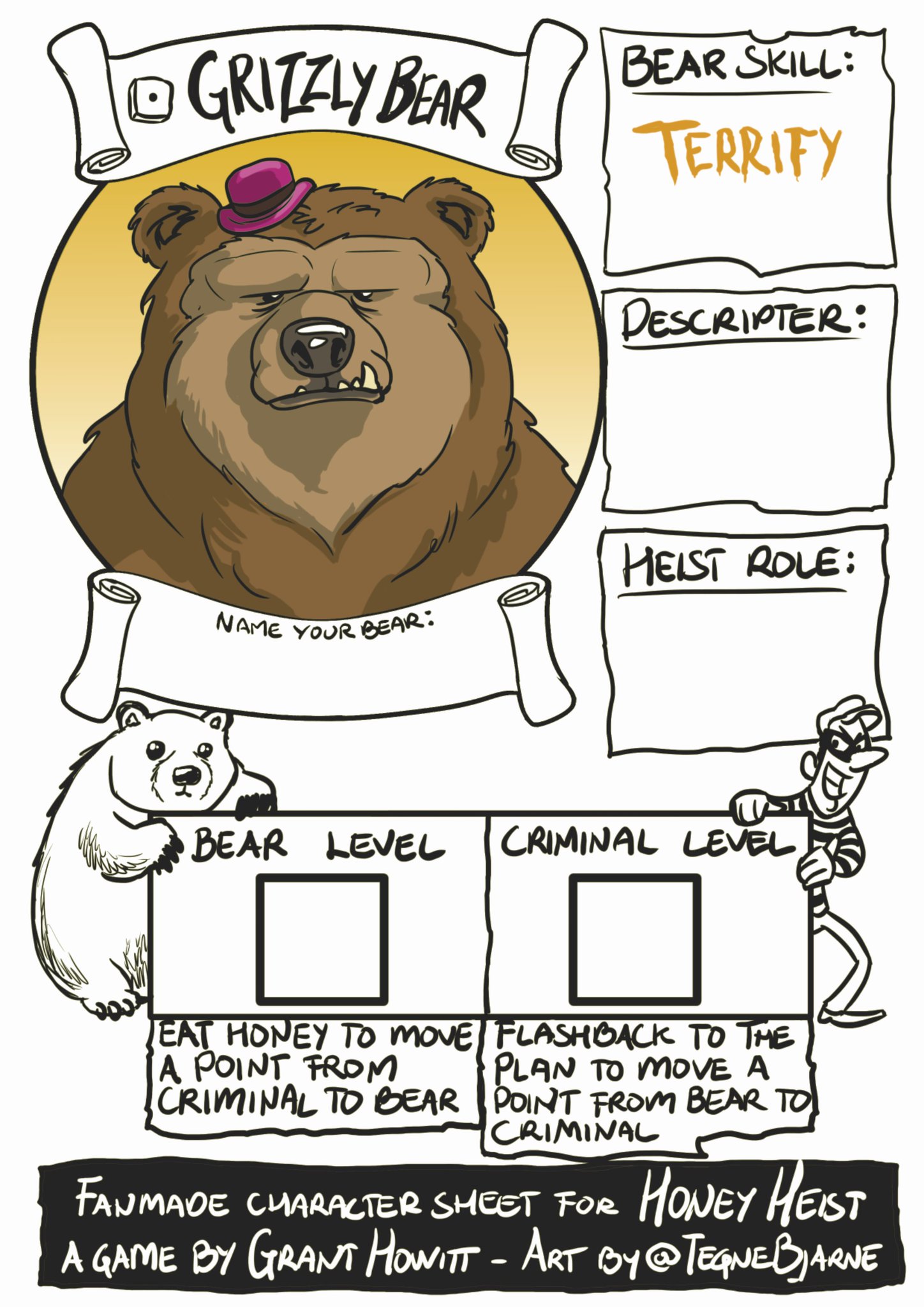 Honey Heist Character Sheet - The system includes a character sheet for.