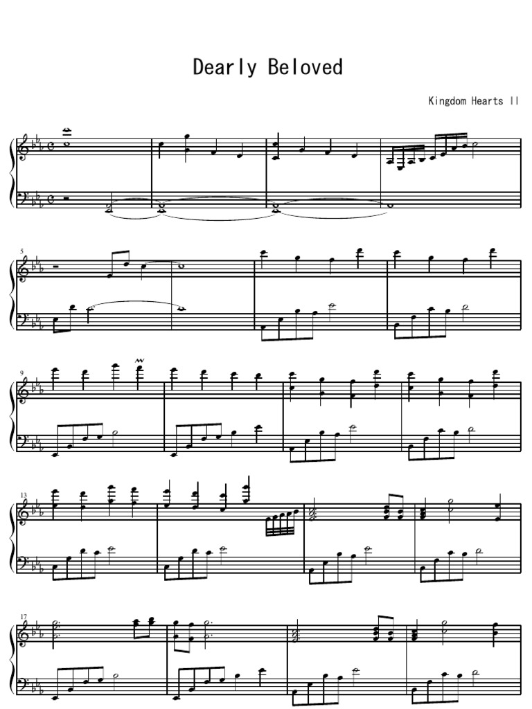Sheet Music Kingdom Hearts II Dearly Beloved