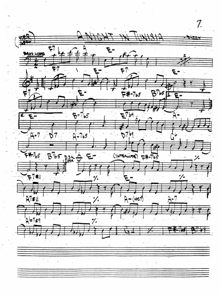 Web e 7 dm7 e 7 dm7 e 7 dm7 em7 5 a7 5 to coda dm7 1. , download and print in pdf or midi free sheet music for a night in tunisia by dizzy gillespie arranged by dick schmitt for. Am7 5 d7 9 gm gm7 c7 gm7 5 c7 9 f6 em7 5 a7 5 d.s. Web.