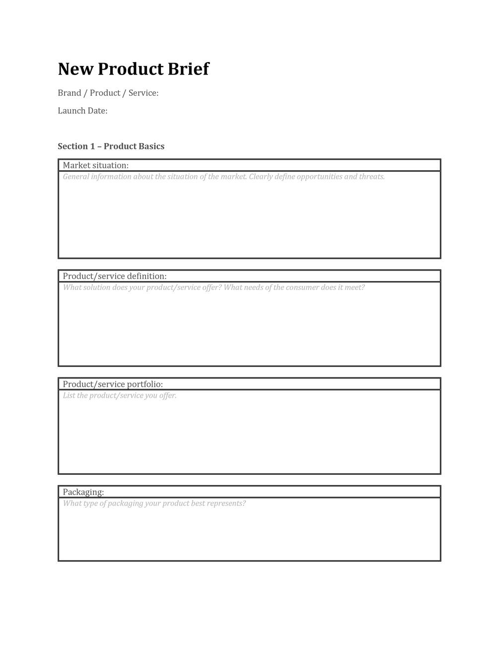 Product Brief Template Word