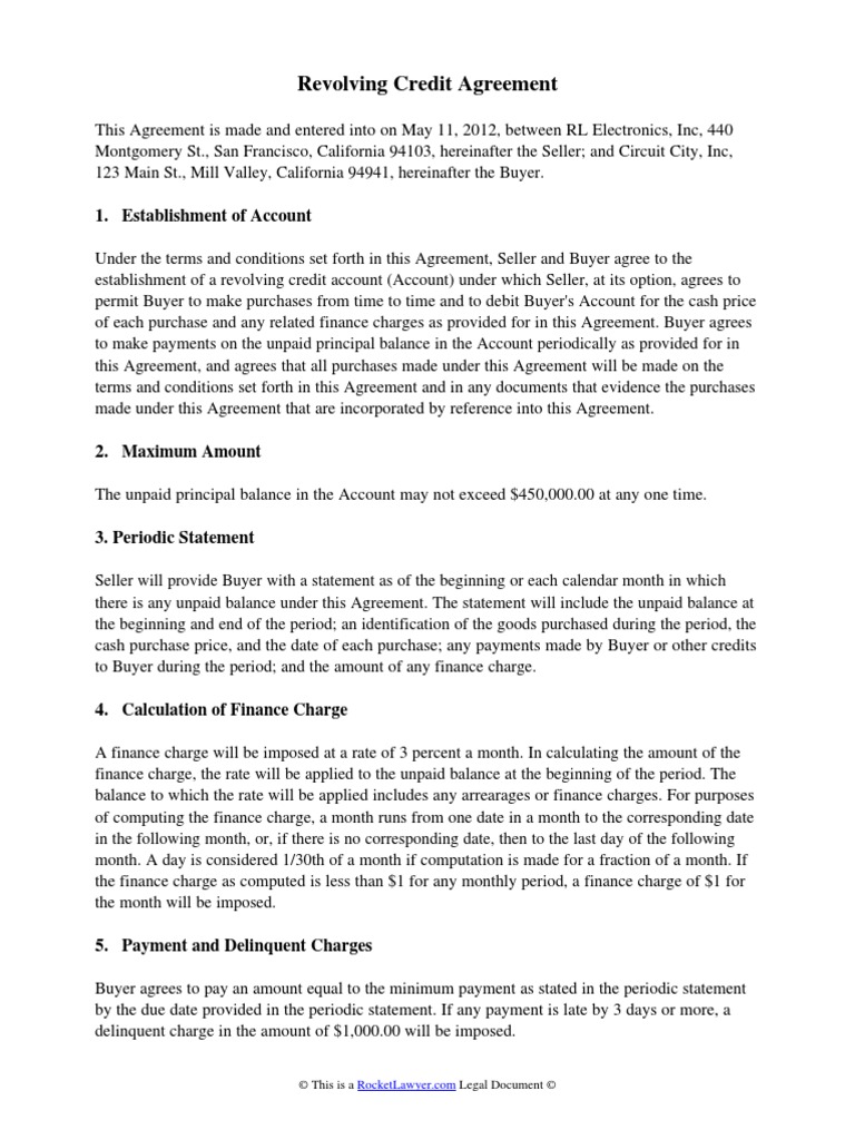 A revolving credit agreement, or revolving line of credit agreement, is a financing agreement made between a lending institution. Revolving line of credit agreements will outline the rights and obligations of both the borrower and the lender. Sold in 200 countriessave money in legal fees Whereas lender is willing to provide such credit as requested by borrower and to make loans thereunder, upon and subject to the terms and.