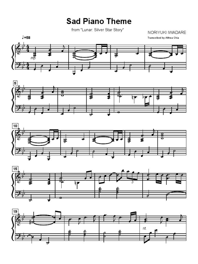 Sad Piano Sheet Music