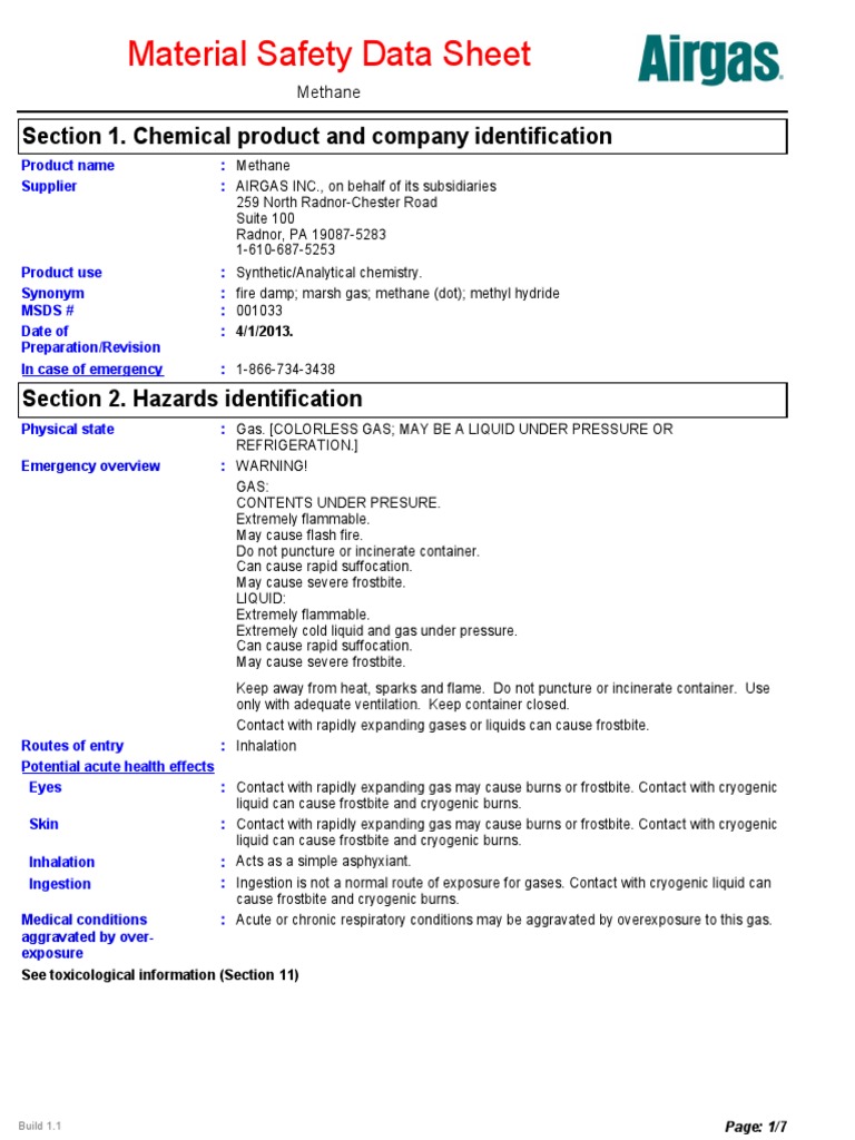 Msds Methane Dangerous Goods Methane Free 30day Trial Scribd