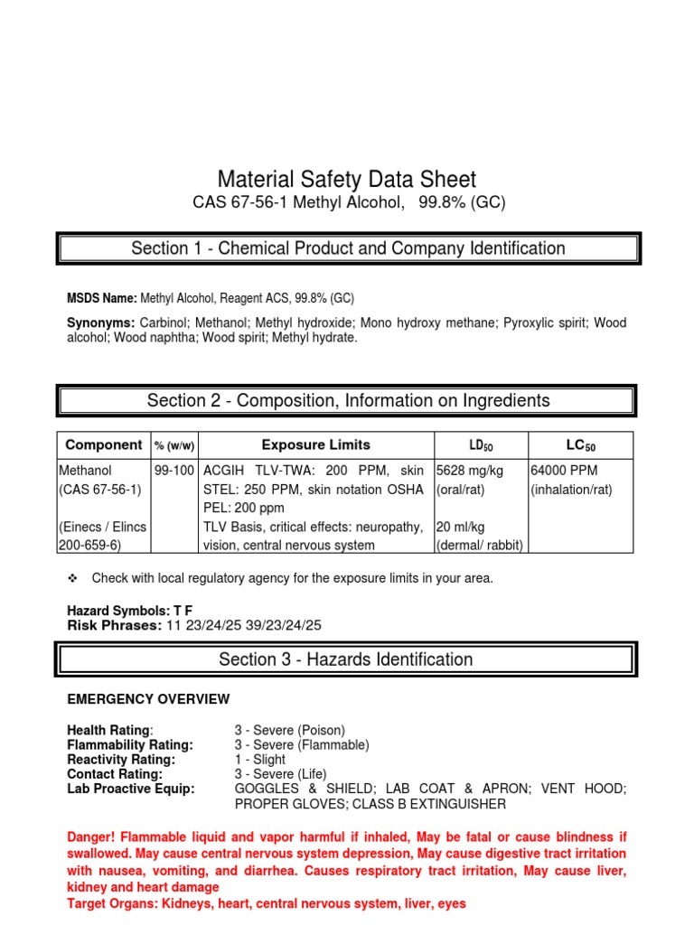 Download Methanol Safety Data Sheet Background Best Information and